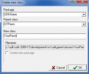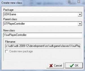 In this tutorial series, I will be using HTPlayerController as HT is a suitable prefix for a project that I am working on. Please name this something that suits your project, but remember that in this series I prefix all classes I create with HT (UDKGame being an exception). If you want to do this manually without UnCodeX, the video tutorial covers how to do this.